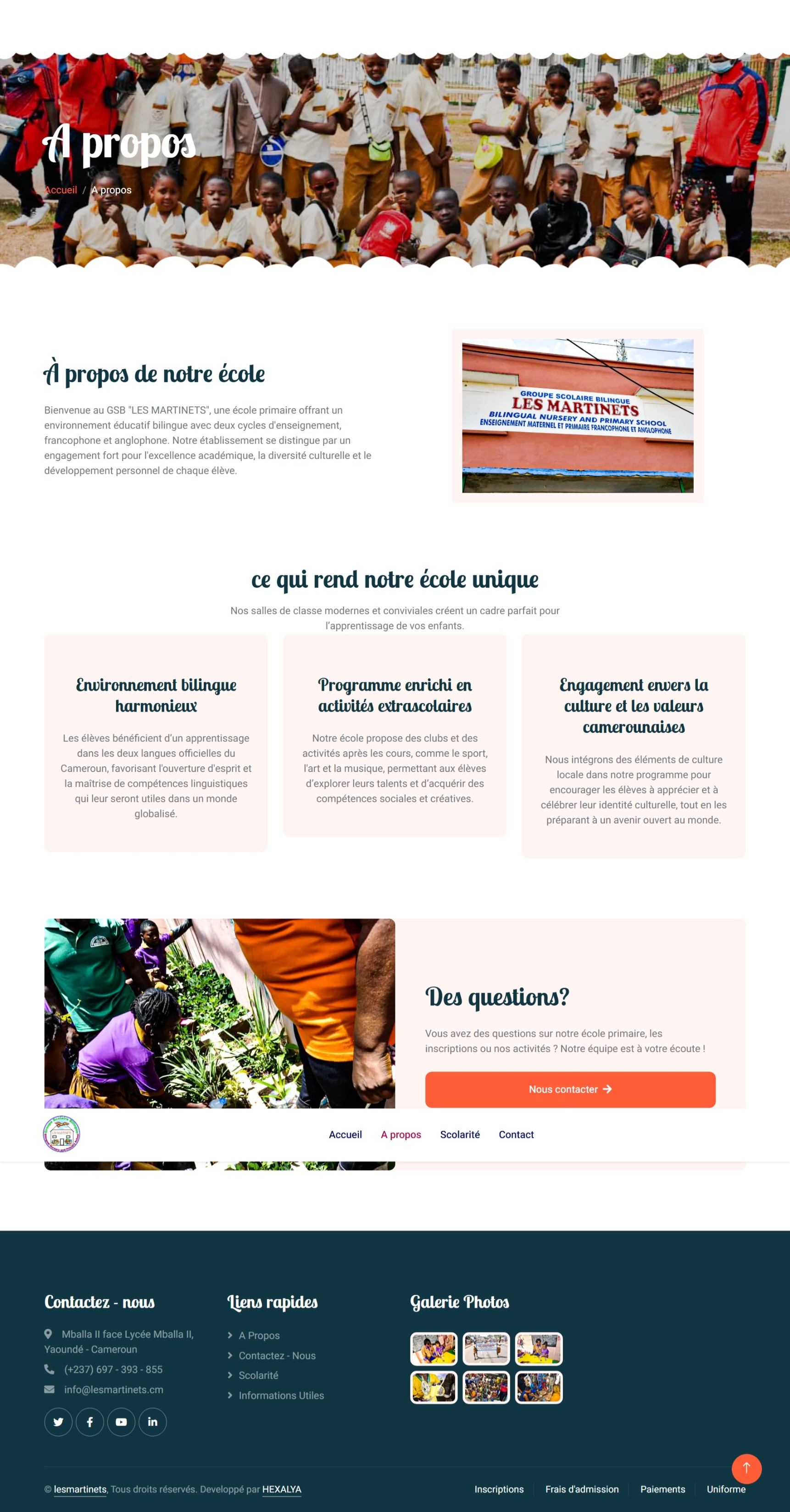 Site web de présentation et d'information du Groupe Scolaire bilingue Prive "Les martinets"