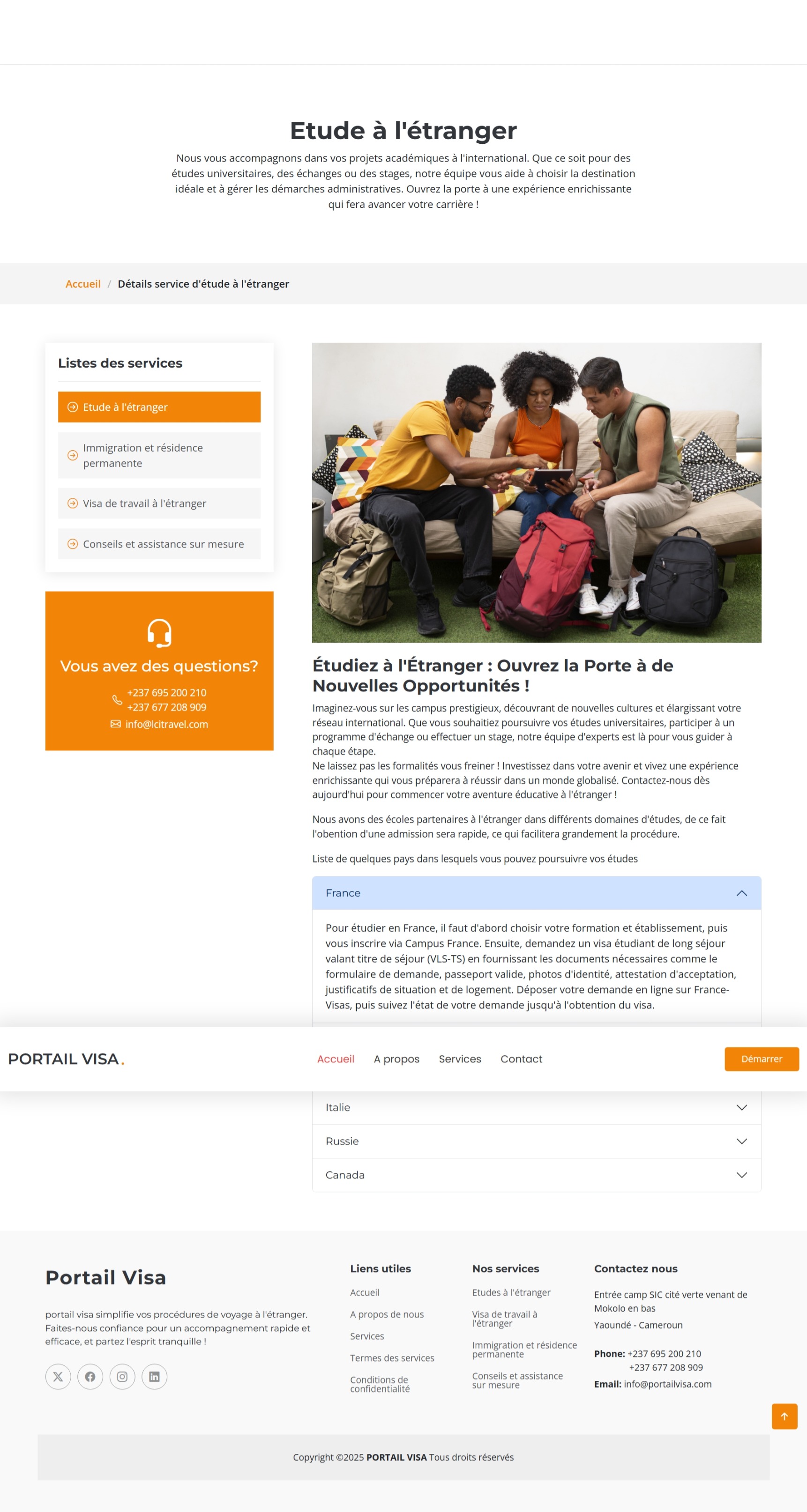 Site web de l'agence de voyage PORTAIL VISA